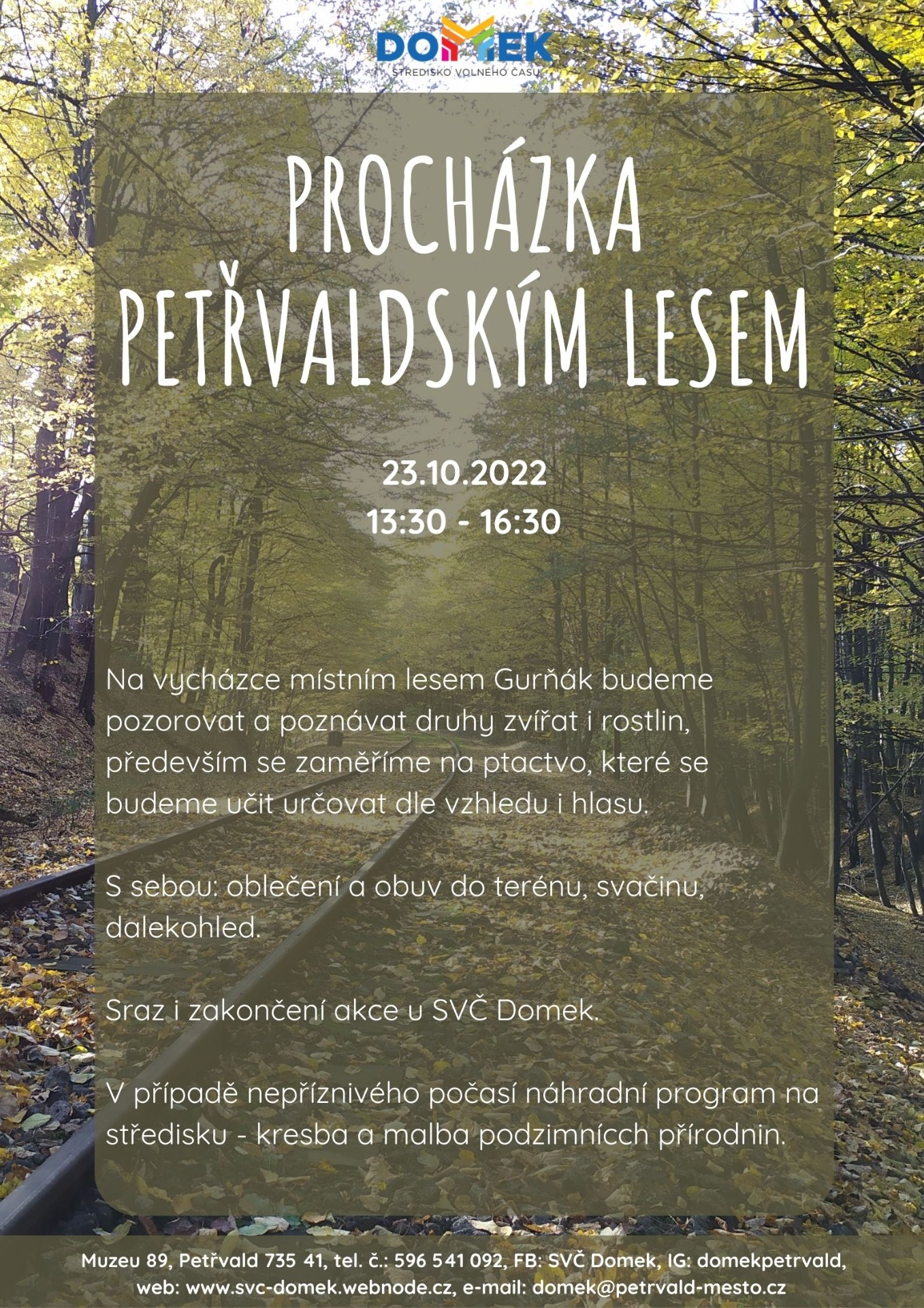 Zveme Vás na procházku podzimní přírodou v okolí města Petřvald, se zaměřením na pozorování a poznávání ptactva.